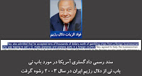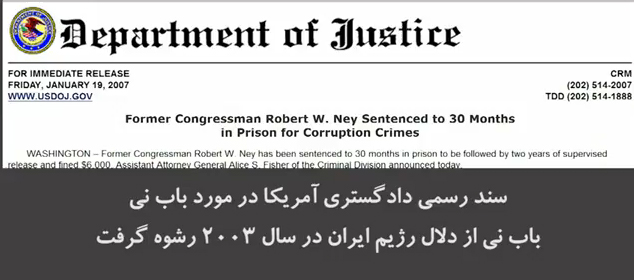 سند رسمي دادگستري آمريكا در مورد باب ني مي گويد كه , باب ني از دلال ايران در سال 2003 رشوه گرفت. ” اين قاچاقچي دلال رژيم فواد الزيات مقيم لندن بود.